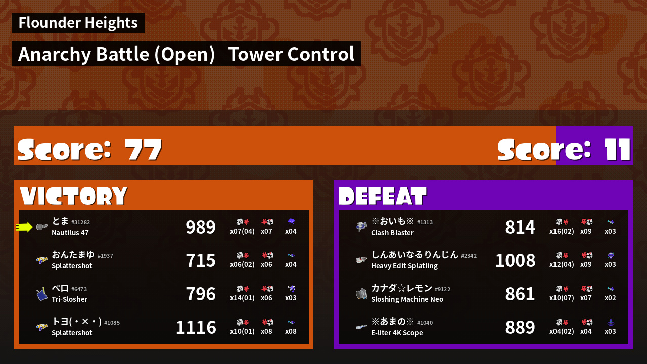 Results of とまニウム's Battle