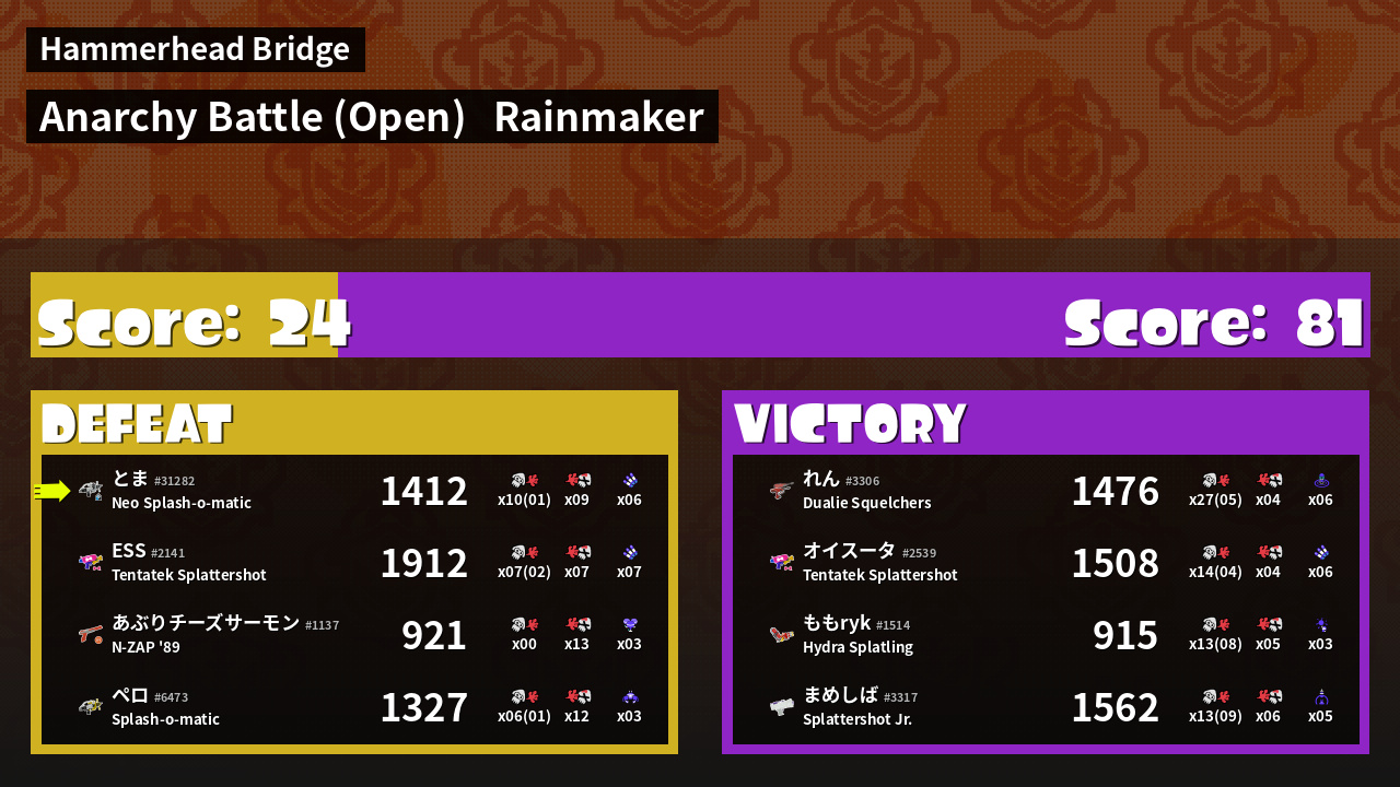 | Mode | Rainmaker - Anarchy Battle (Open) | ||