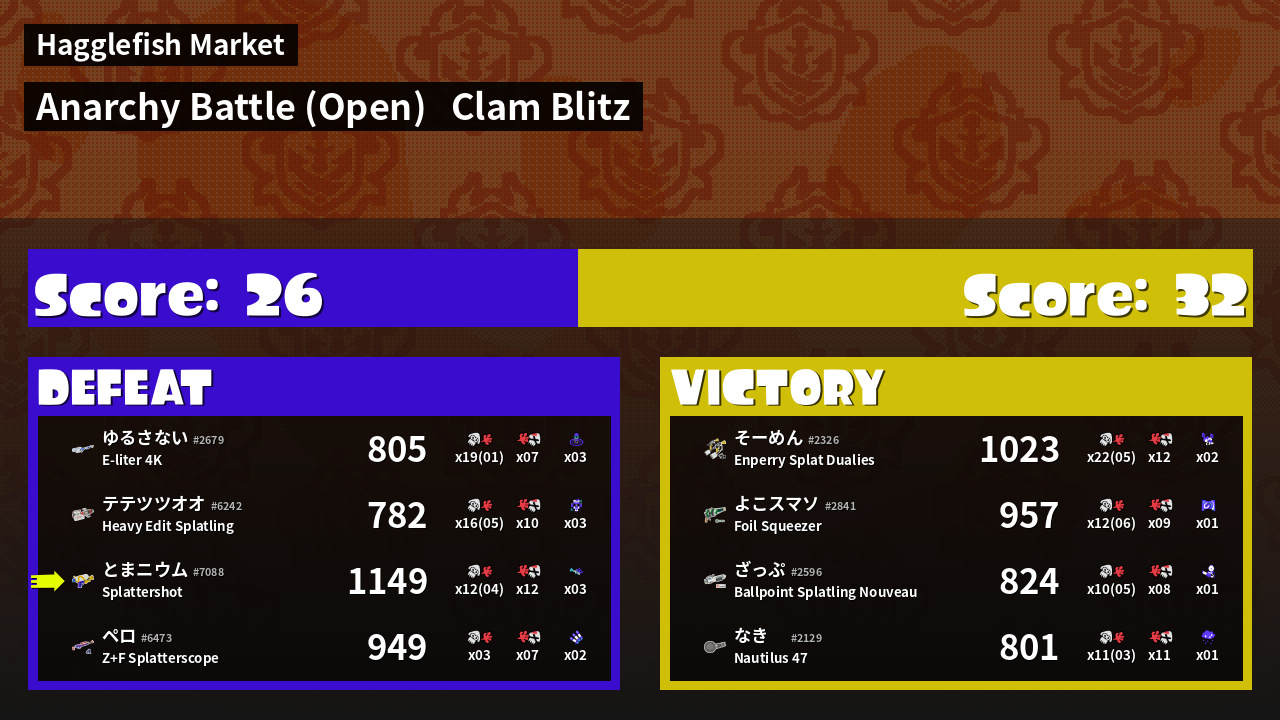 | Mode | Clam Blitz - Anarchy Battle (Open) | ||