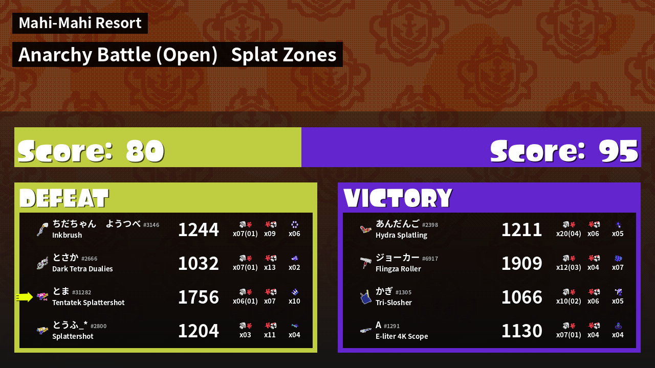 | Mode | Splat Zones - Anarchy Battle (Open) | ||