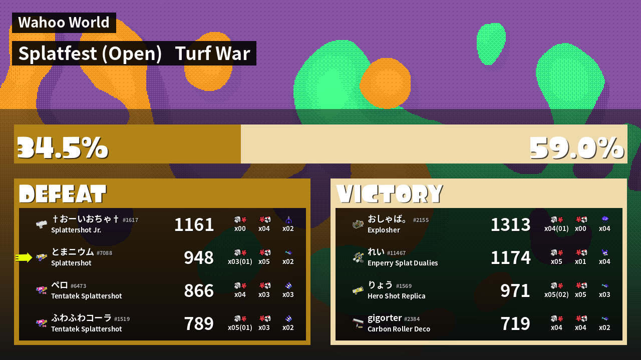 | Medals | #1 Home-Base Inker #1 Super Jump Spot #1 Splat Assister | ||