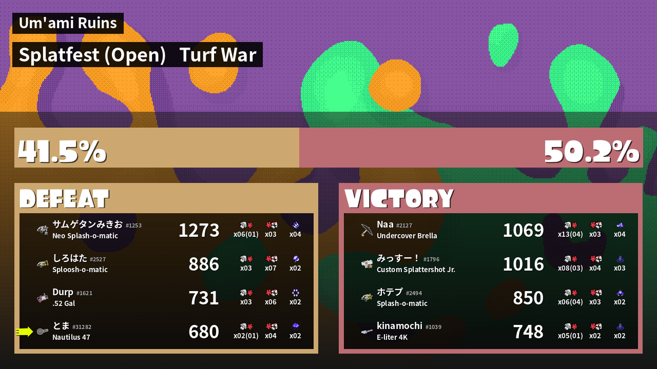 | Medals | #1 Popular Target #1 Splat Assister #1 Ink Storm User | ||