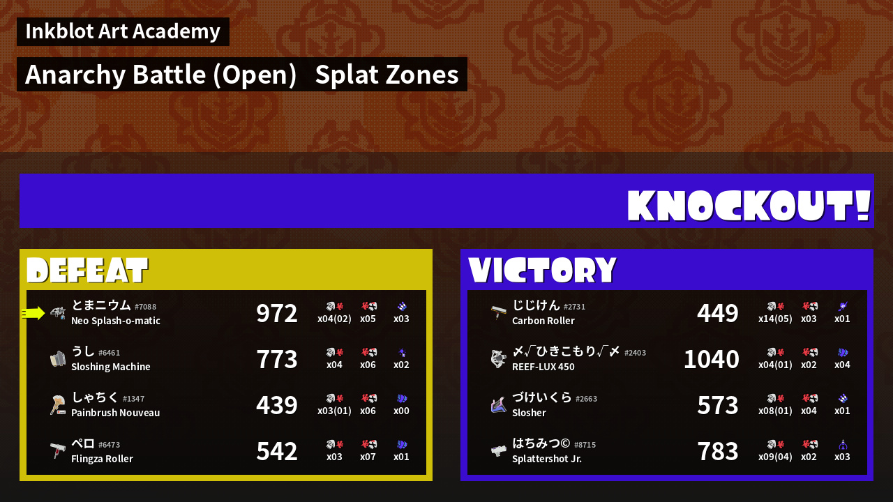| Mode | Splat Zones - Anarchy Battle (Open) | ||