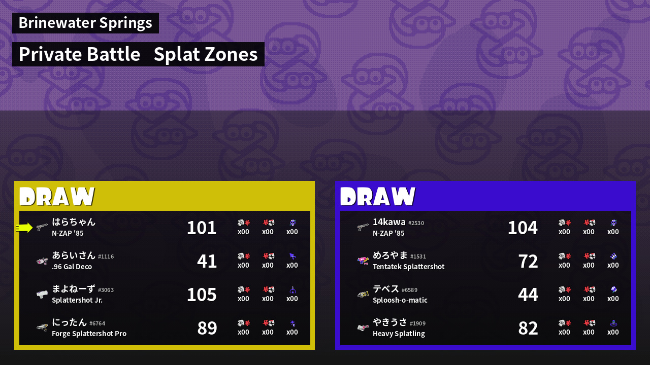 | Mode | Splat Zones - Private Battle | ||