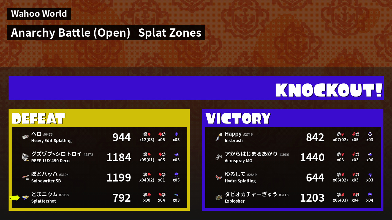 | Mode | Splat Zones - Anarchy Battle (Open) | ||