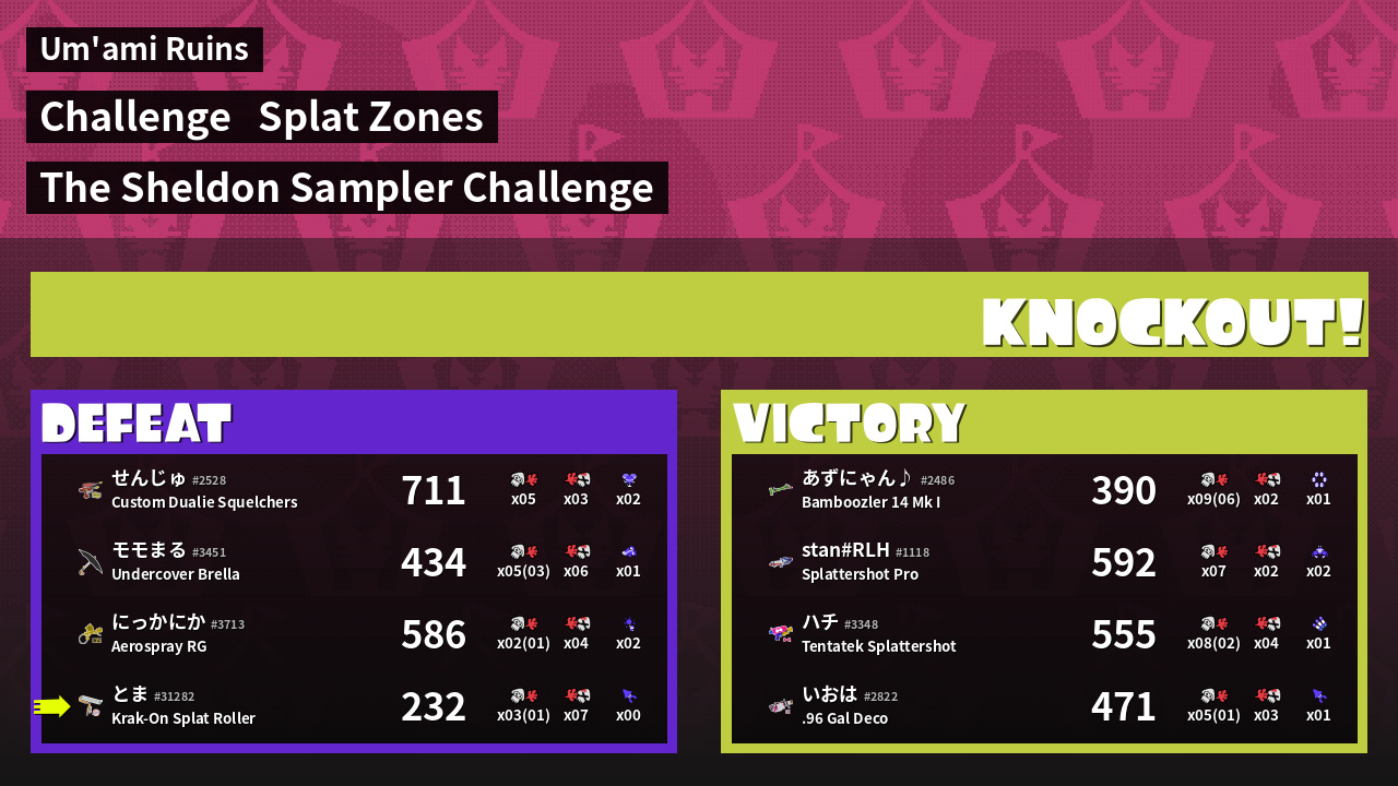 | Medals | #2 Enemy Splatter #2 Splat Assister | ||