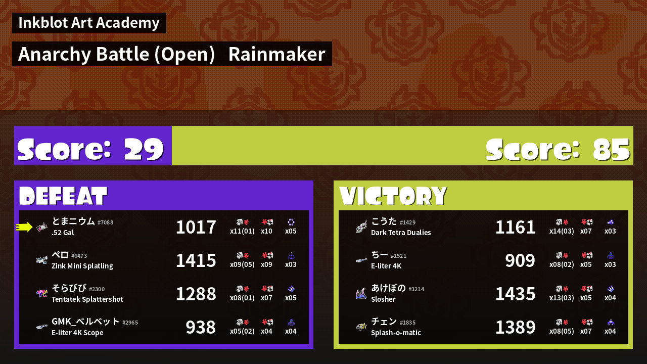 | Mode | Rainmaker - Anarchy Battle (Open) | ||