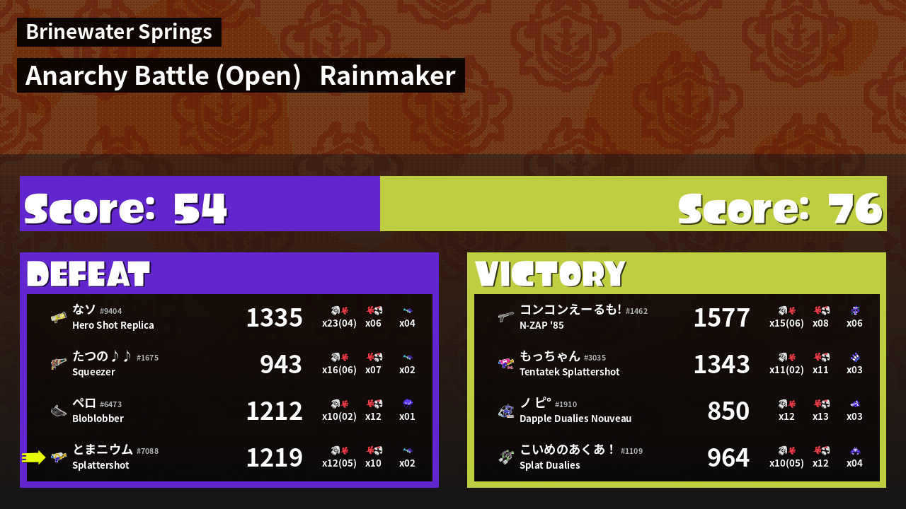 | Mode | Rainmaker - Anarchy Battle (Open) | ||