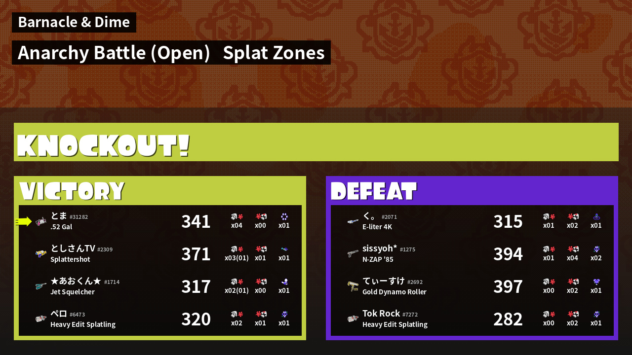 | Mode | Splat Zones - Anarchy Battle (Open) | ||