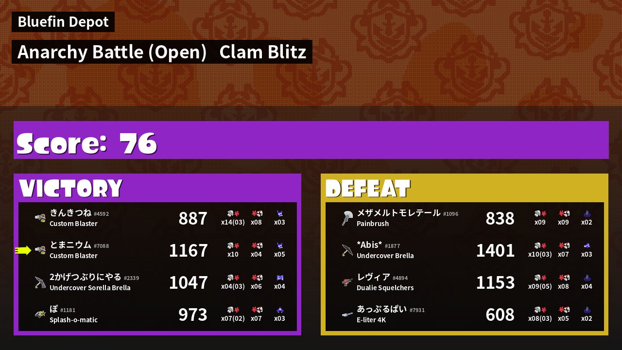 | Mode | Clam Blitz - Anarchy Battle (Open) | ||