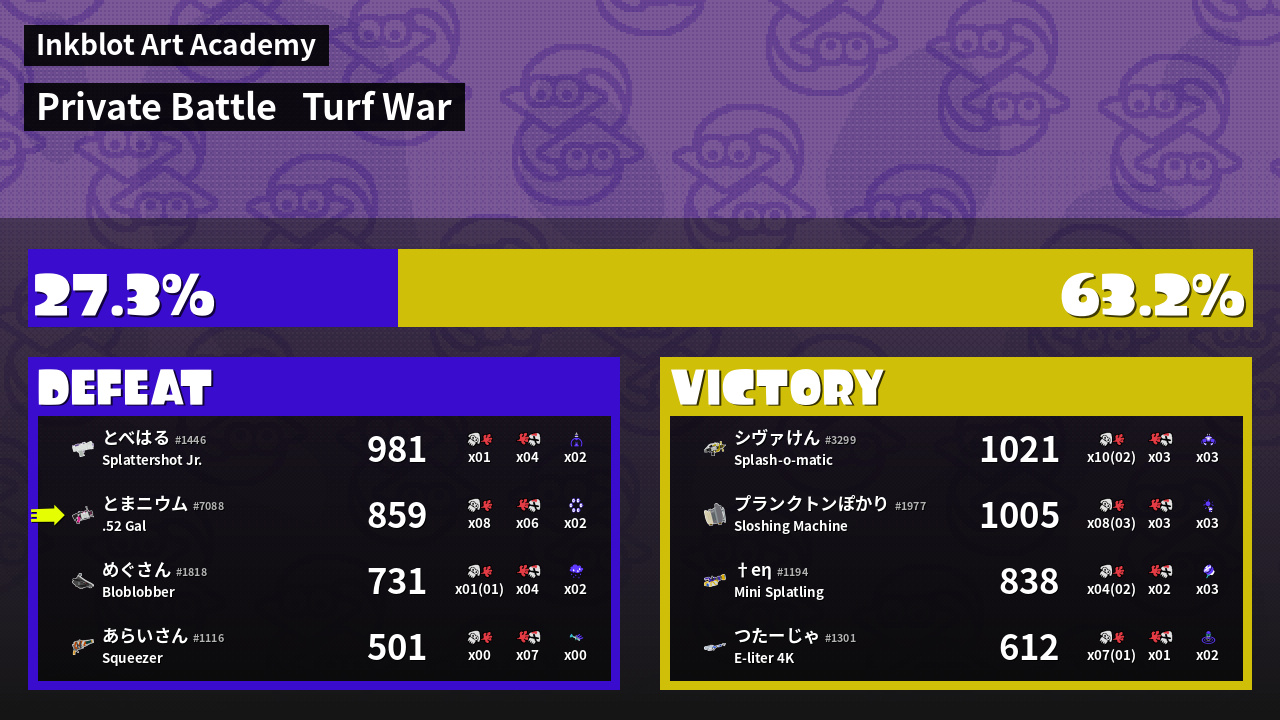 | Medals | #1 Overall Splatter #1 Popular Target #1 Enemy Splatter | ||