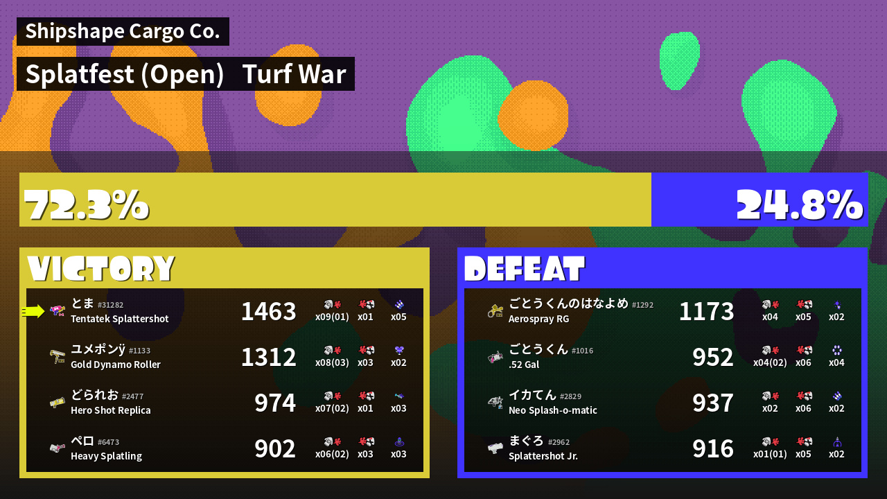 | Medals | #1 Overall Splatter #1 Turf Inker #1 Home-Base Inker | ||