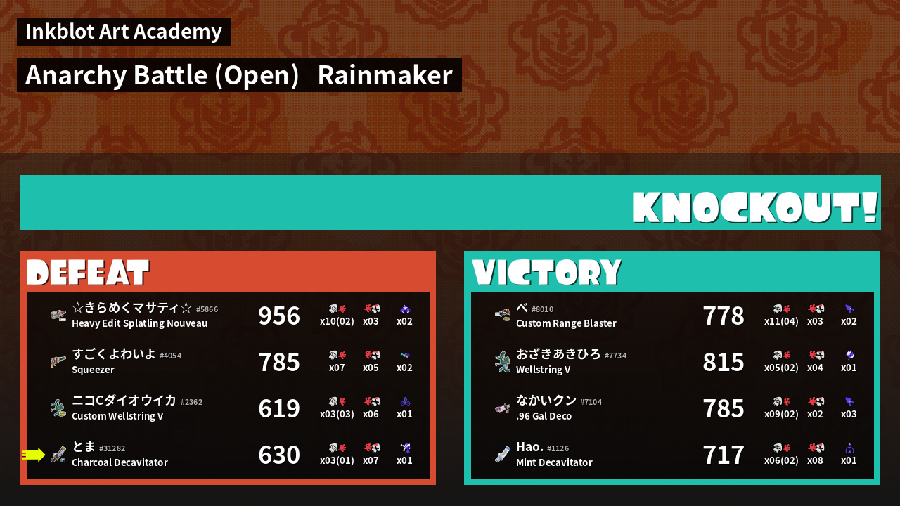 | Mode | Rainmaker - Anarchy Battle (Open) | ||