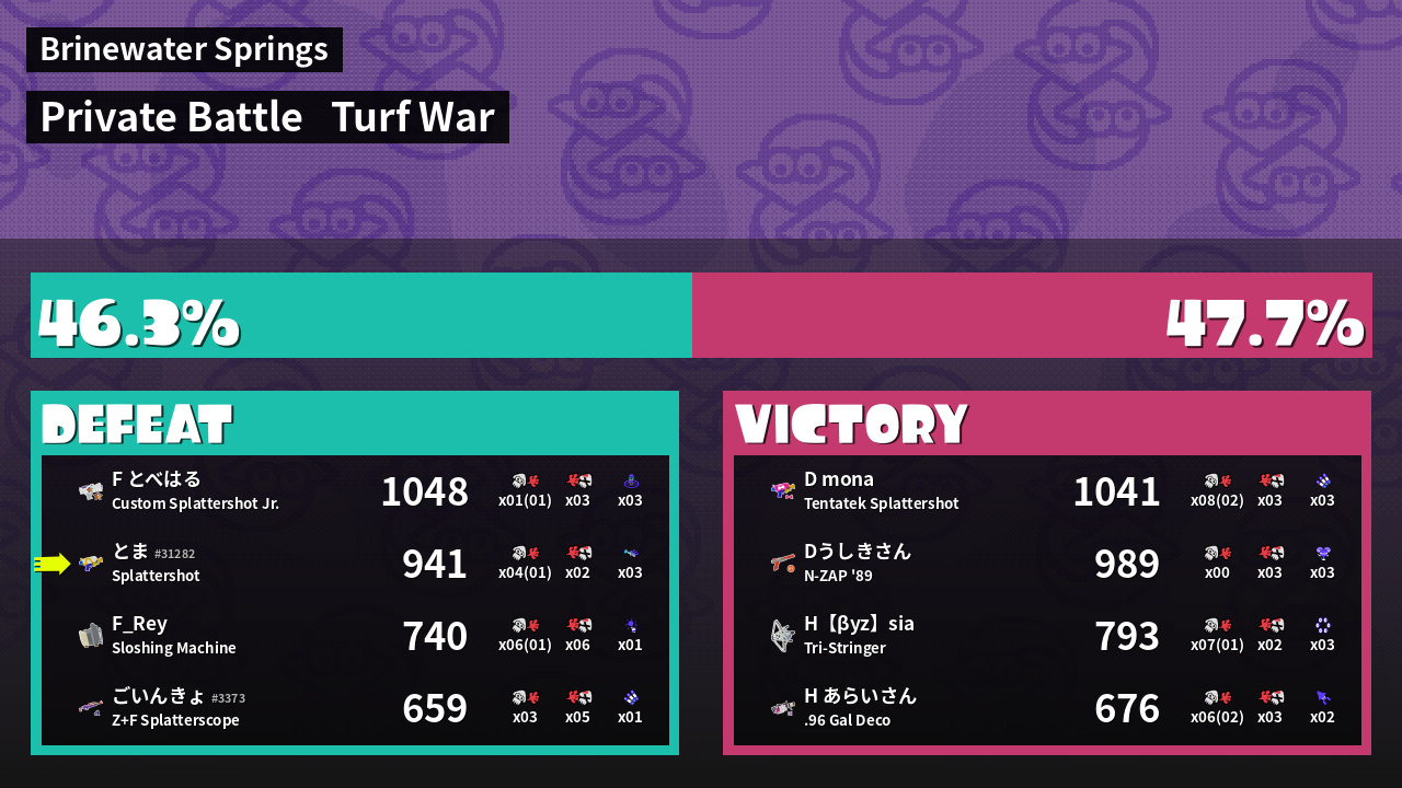 | Mode | Turf War - Private Battle | ||