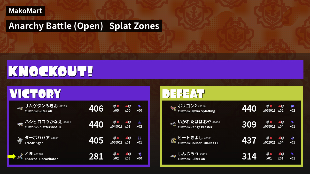 | Mode | Splat Zones - Anarchy Battle (Open) | ||
