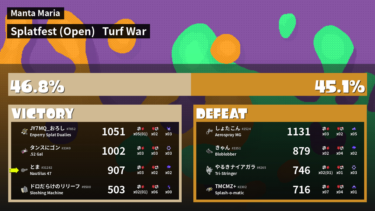 | Medals | #1 Home-Base Inker #1 Damage Taker #1 Ink Storm User | ||