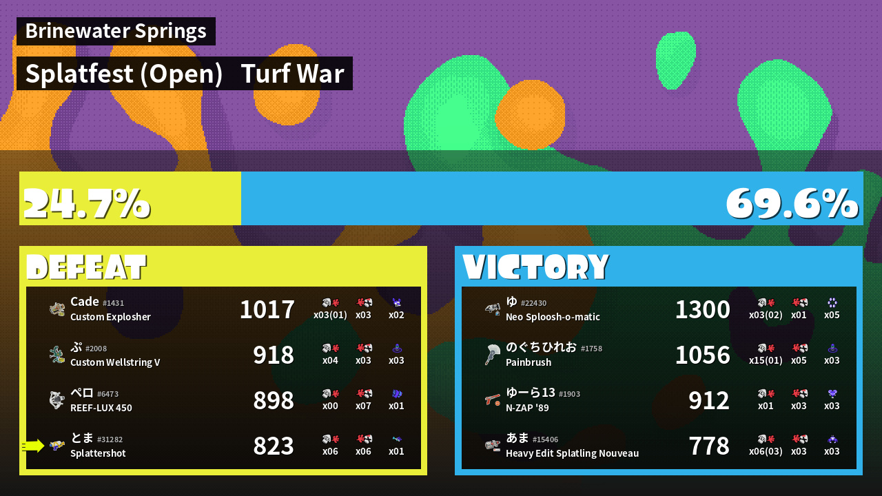 | Medals | #1 Overall Splatter #1 Popular Target #1 Enemy Splatter | ||