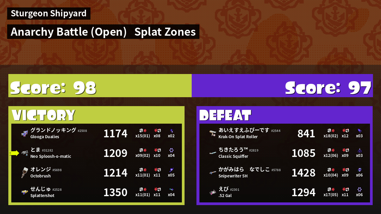 | Mode | Splat Zones - Anarchy Battle (Open) | ||