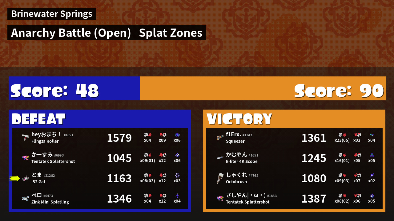 | Mode | Splat Zones - Anarchy Battle (Open) | ||