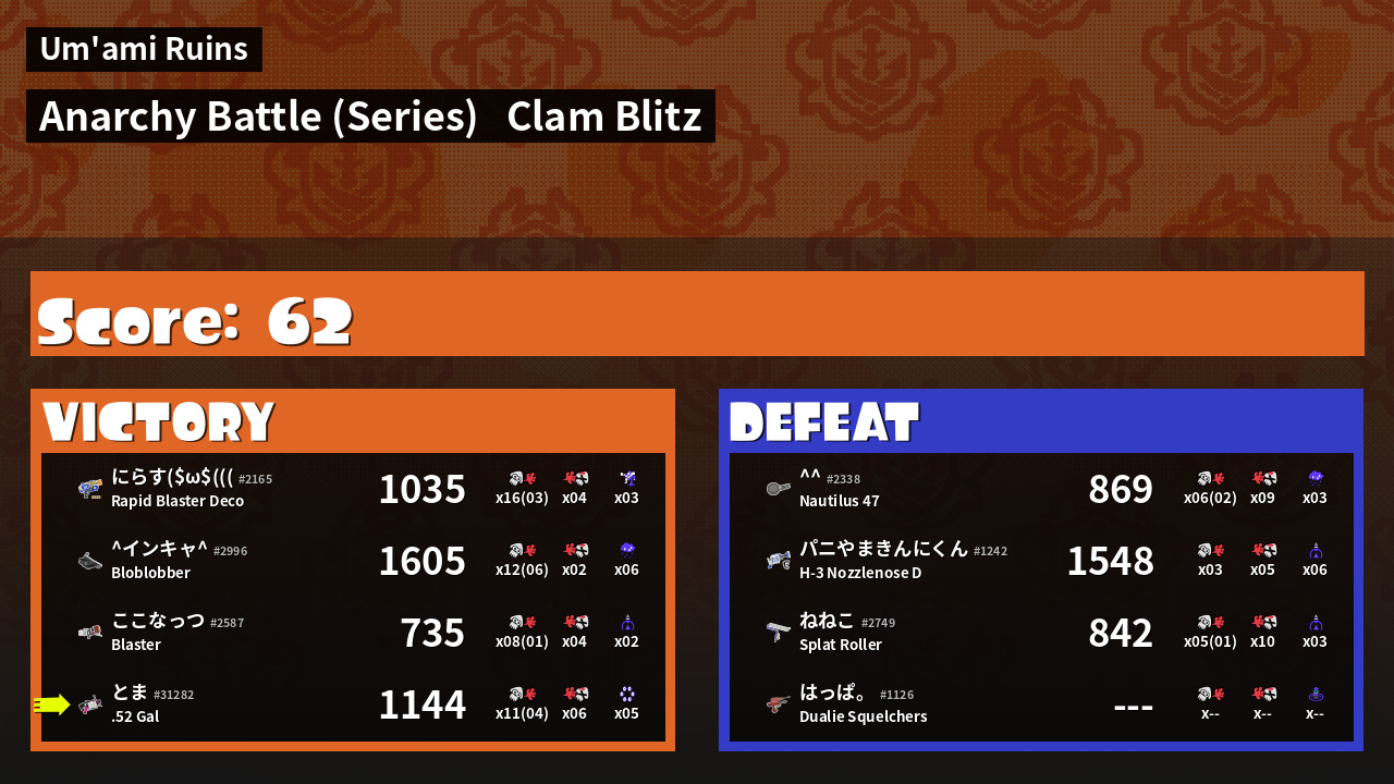 | Mode | Clam Blitz - Anarchy Battle (Series) | ||