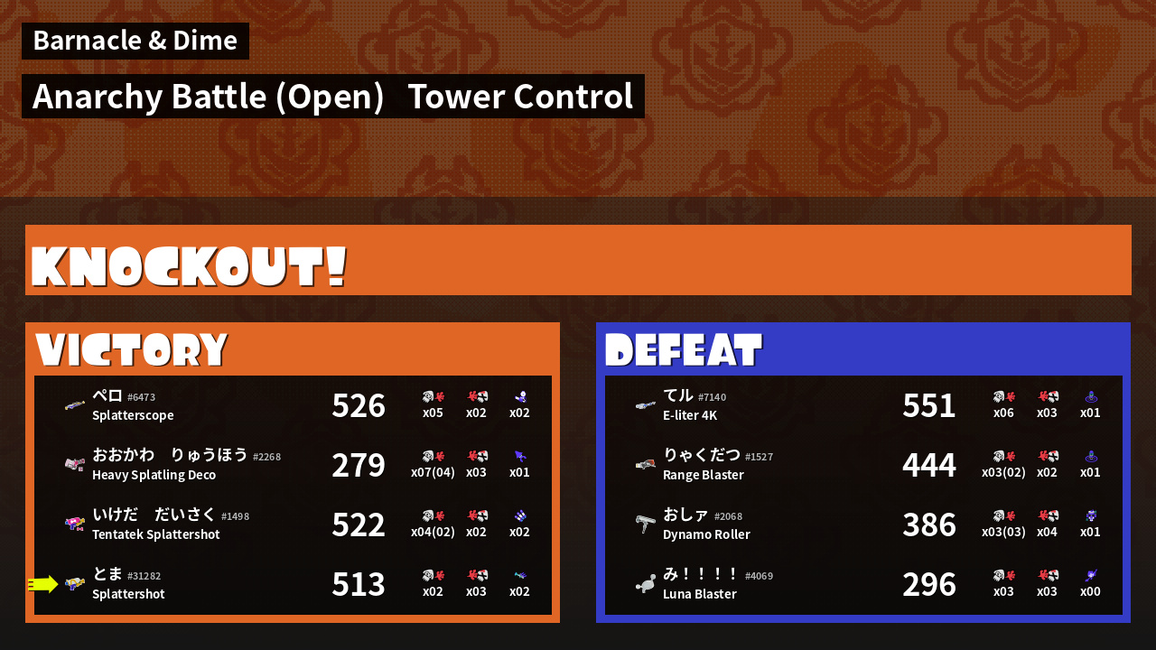 | Mode | Tower Control - Anarchy Battle (Open) | ||