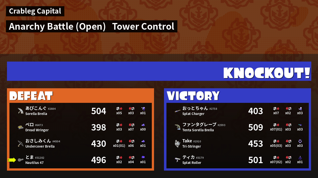 | Mode | Tower Control - Anarchy Battle (Open) | ||