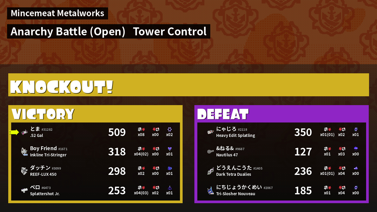| Mode | Tower Control - Anarchy Battle (Open) | ||