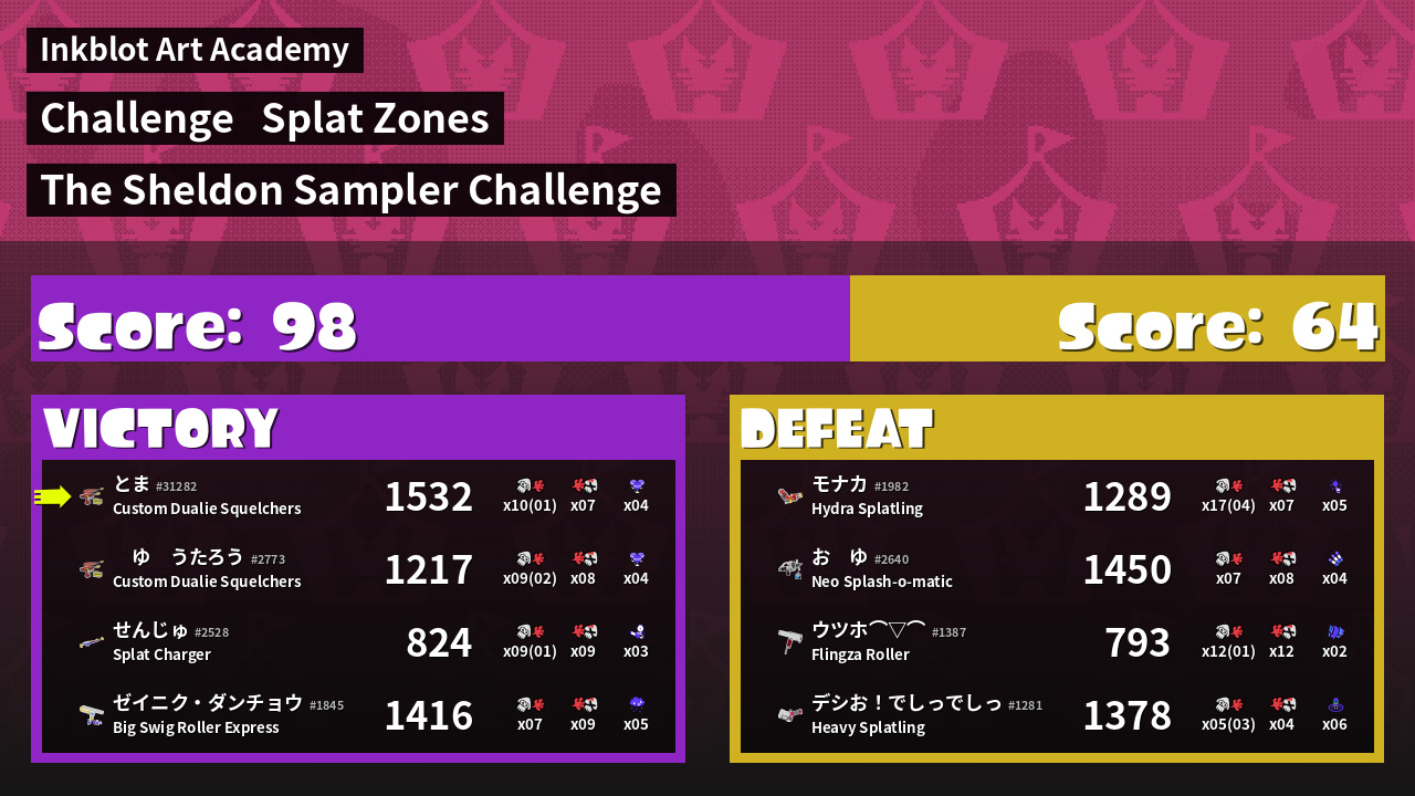 | Medals |  #1 Overall Splatter  #1 Splat Zone Inker  #1 Turf Inker | ||