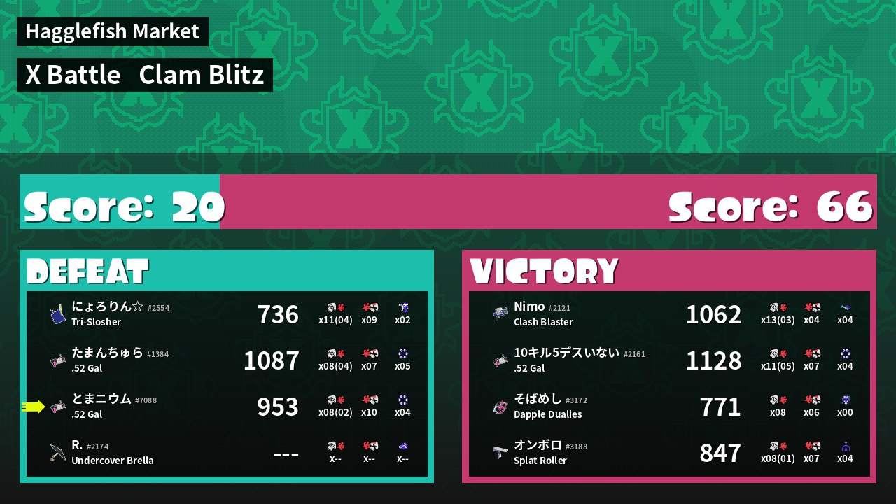 | Medals | #1 Killer Wail 5.1 User #2 Overall Splatter #2 Turf Inker | ||