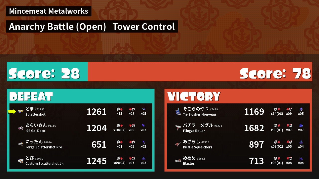 | Mode | Tower Control - Anarchy Battle (Open) | ||