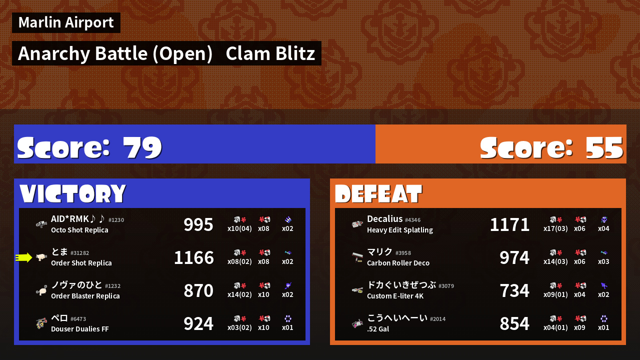 | Mode | Clam Blitz - Anarchy Battle (Open) | ||