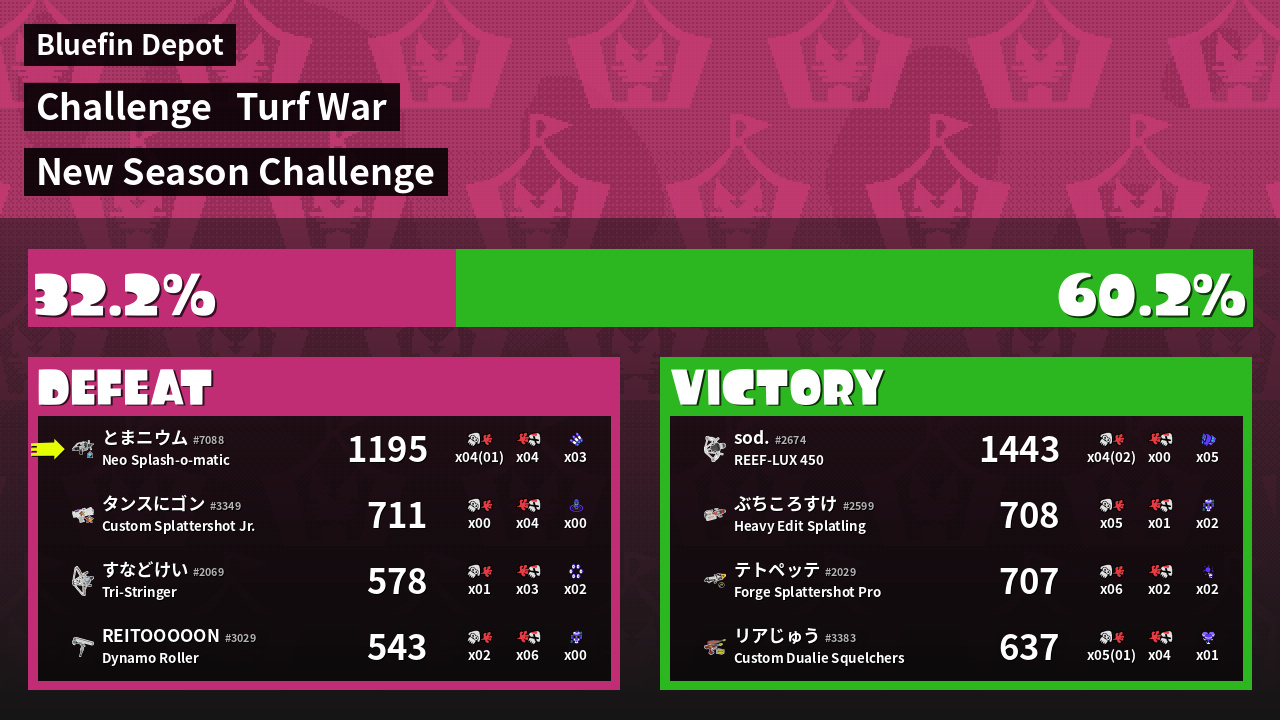 | Mode | Turf War - Challenge | ||