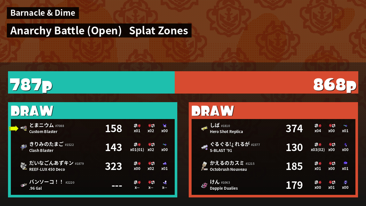 | Mode | Splat Zones - Anarchy Battle (Open) | ||