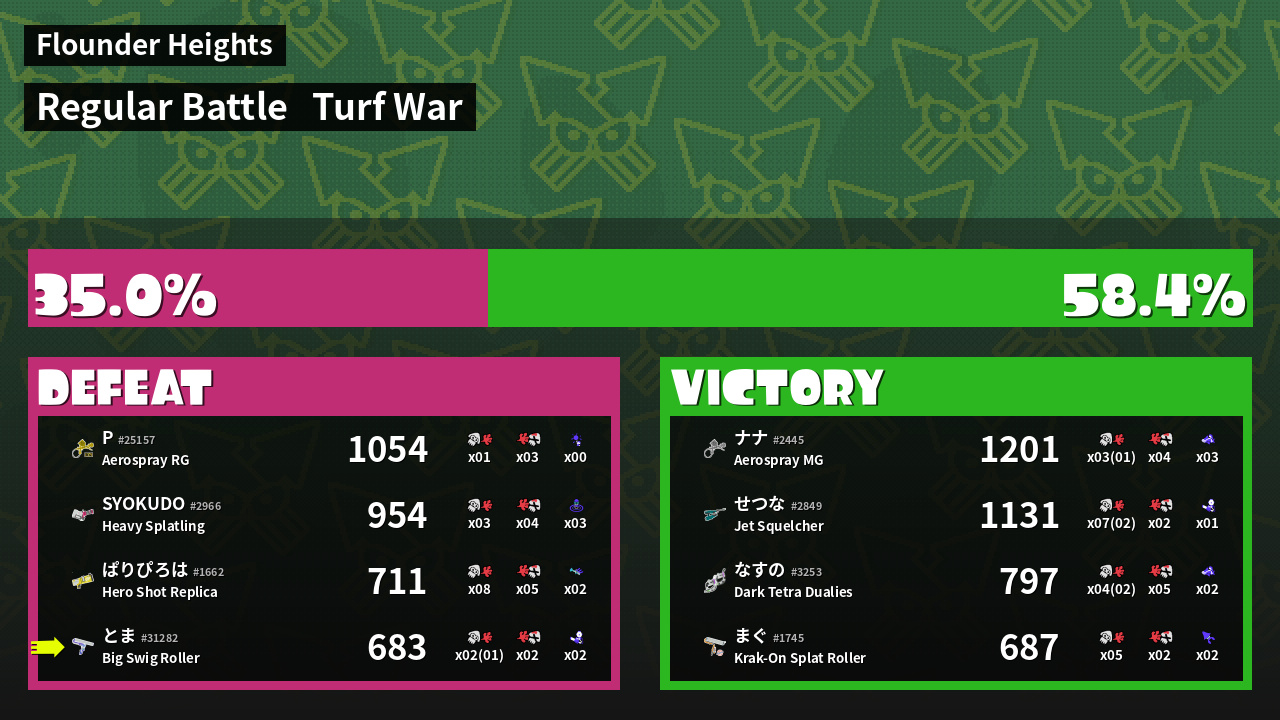 | Mode | Turf War - Regular Battle | ||