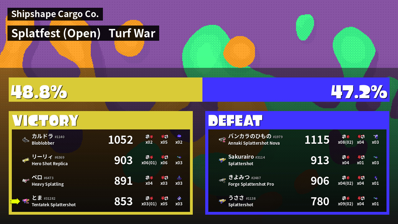 | Medals | #1 Splat Assister #1 Damage Taker #2 Popular Target | ||