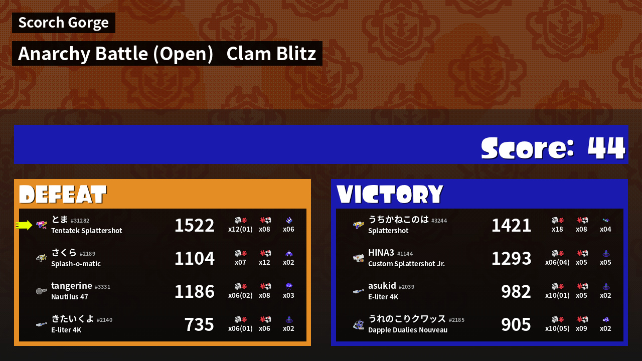 | Mode | Clam Blitz - Anarchy Battle (Open) | ||