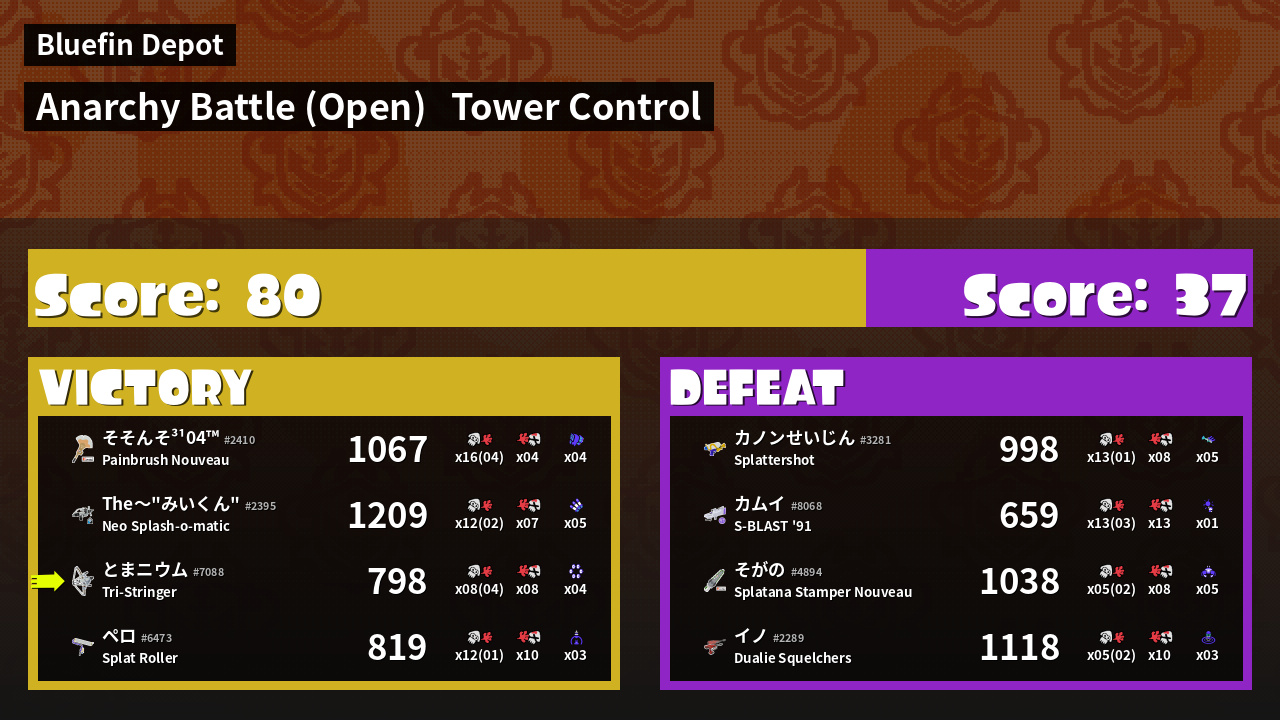 | Mode | Tower Control - Anarchy Battle (Open) | ||