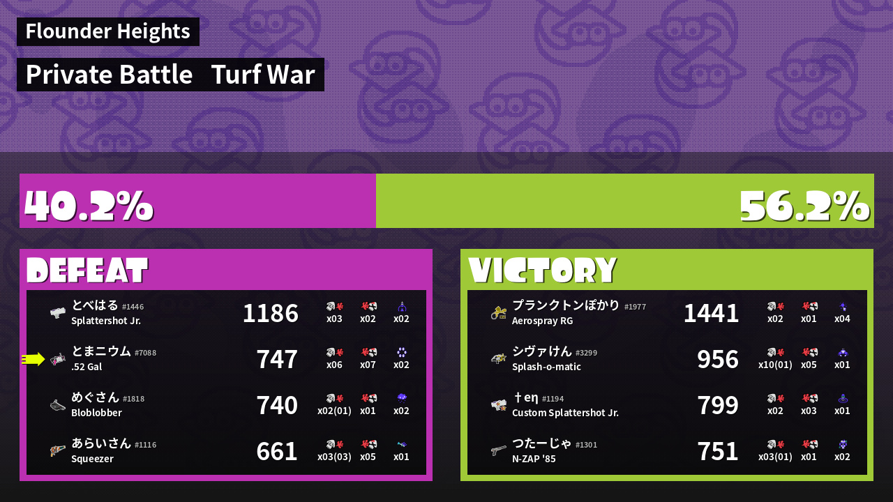 | Medals | #1 Overall Splatter #1 Popular Target #1 Enemy-Base Inker | ||