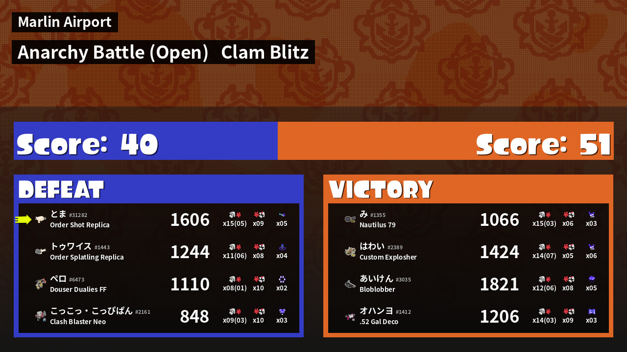 | Mode |  Clam Blitz -  Anarchy Battle (Open) | ||