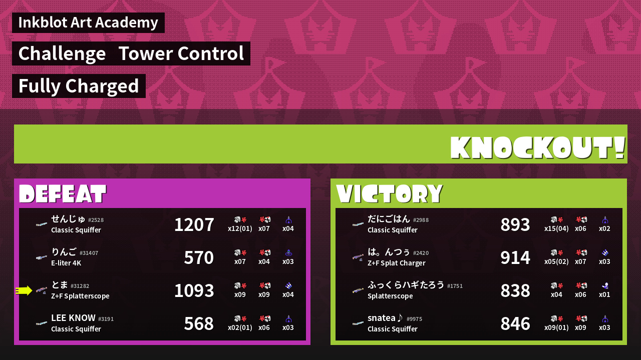 | Medals | #1 Score Booster #1 Tower Stopper #2 Overall Splatter | ||