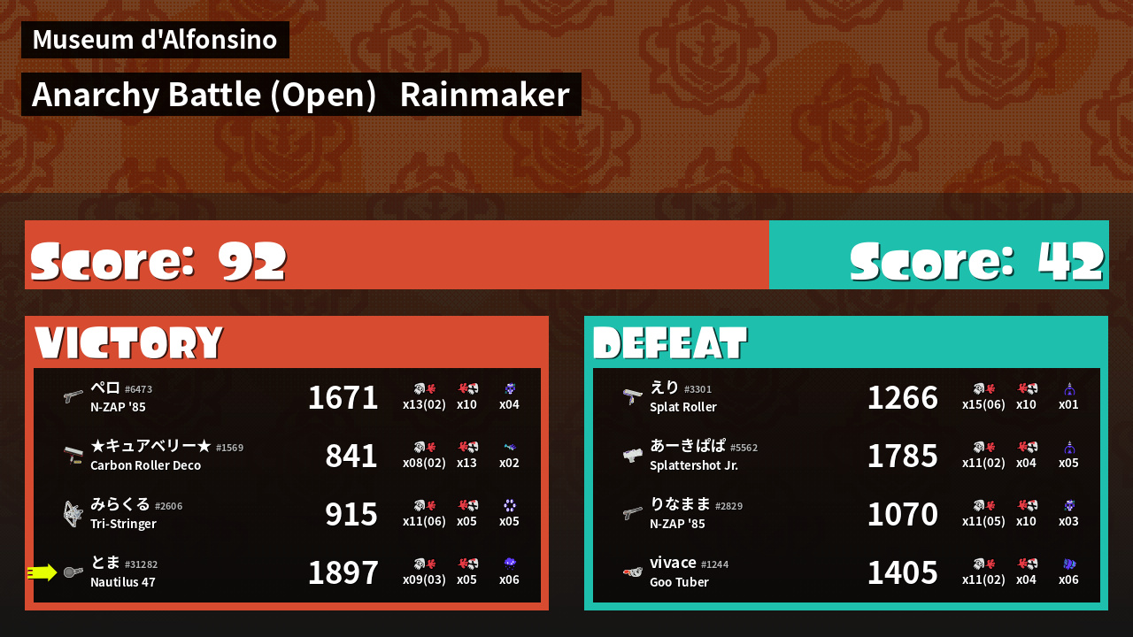 | Mode | Rainmaker - Anarchy Battle (Open) | ||