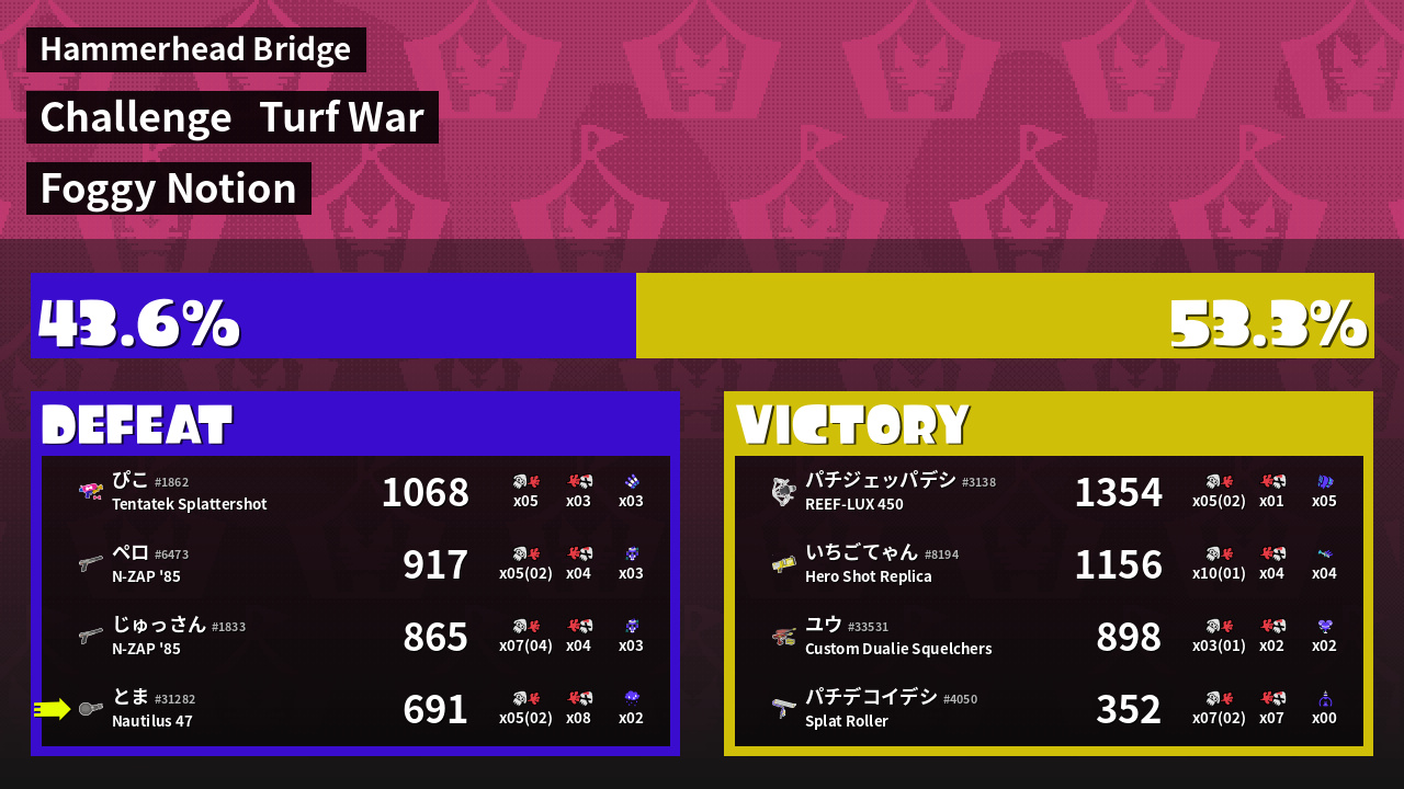 | Medals | #1 Popular Target #1 Base Defender #2 Overall Splatter | ||