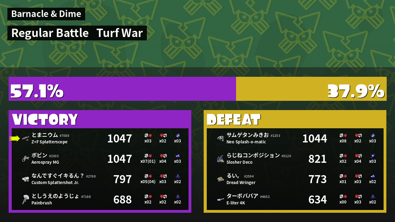 | Mode | Turf War - Regular Battle | ||