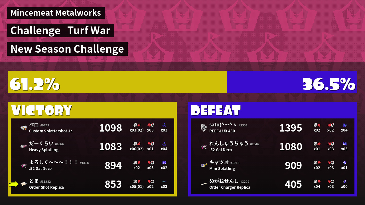 | Medals | #1 Popular Target #1 Enemy Splatter #1 Base Defender | ||