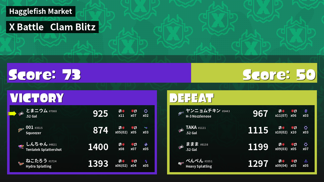 | Mode | Clam Blitz - X Battle | ||