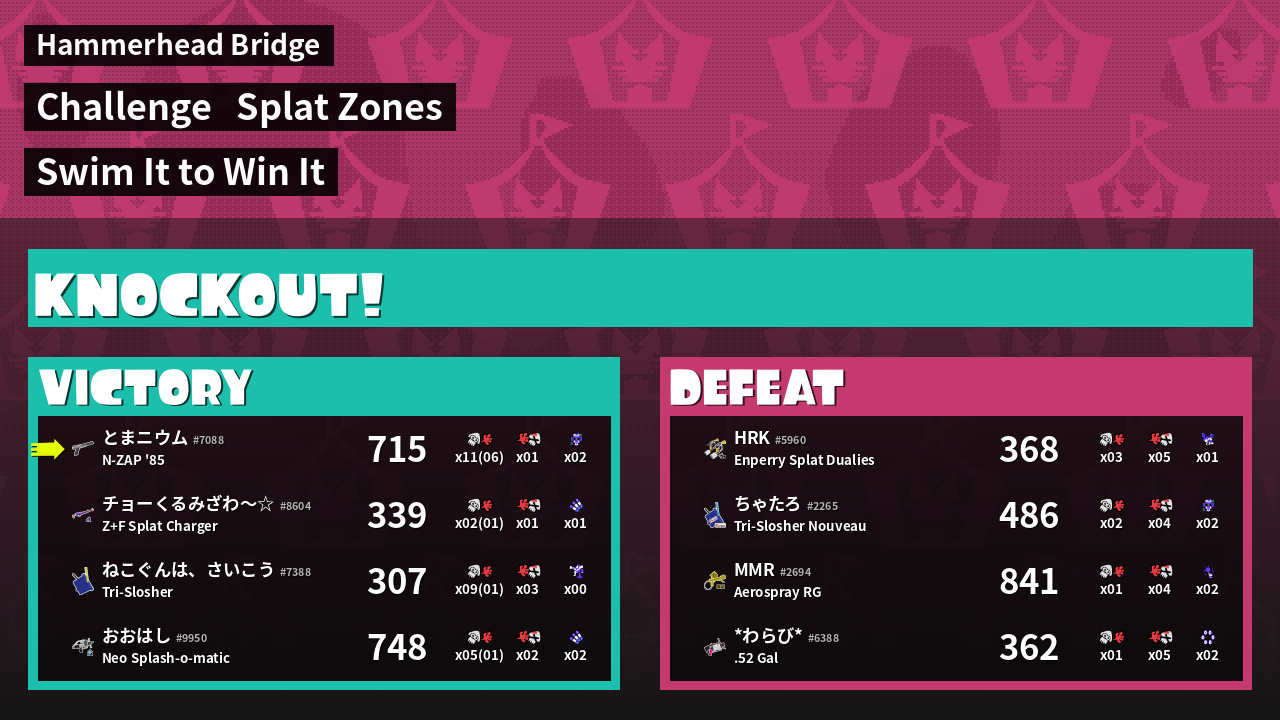| Medals | #1 Overall Splatter #1 Splat Zone Inker #1 Splat Zone Guard | ||