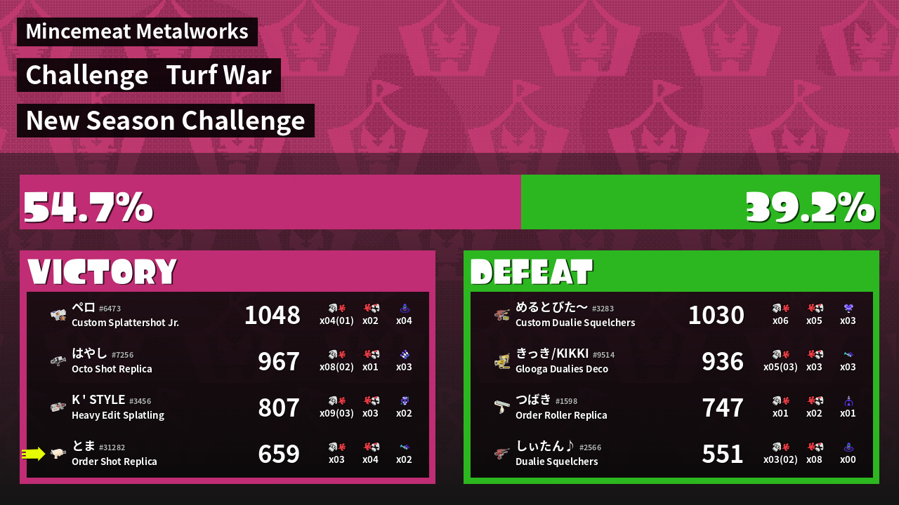 | Mode | Turf War - Challenge | ||