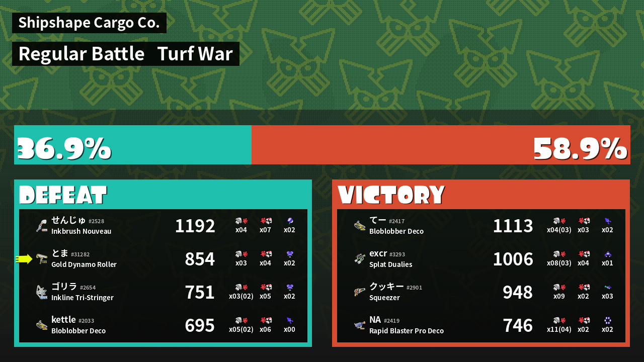 | Mode | Turf War - Regular Battle | ||