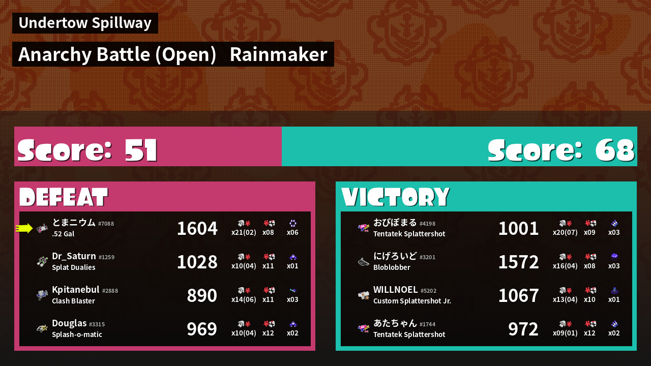 | Medals | #1 Overall Splatter #1 Turf Inker #1 Super Jump Spot | ||