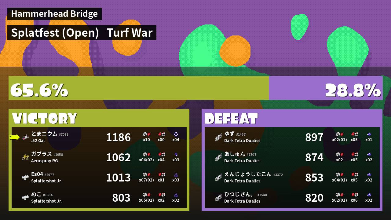 | Medals | #1 Overall Splatter #1 Turf Inker #1 Enemy Splatter | ||
